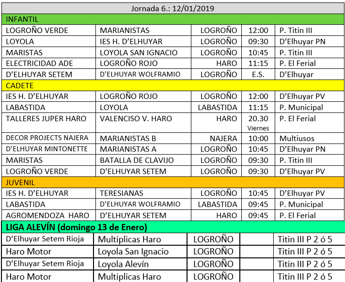 Asimismo se disputa la jornada sexta de los Juegos Deportivos de La Rioja en categorías infantil, cadete, juvenil y Liga Alevín.