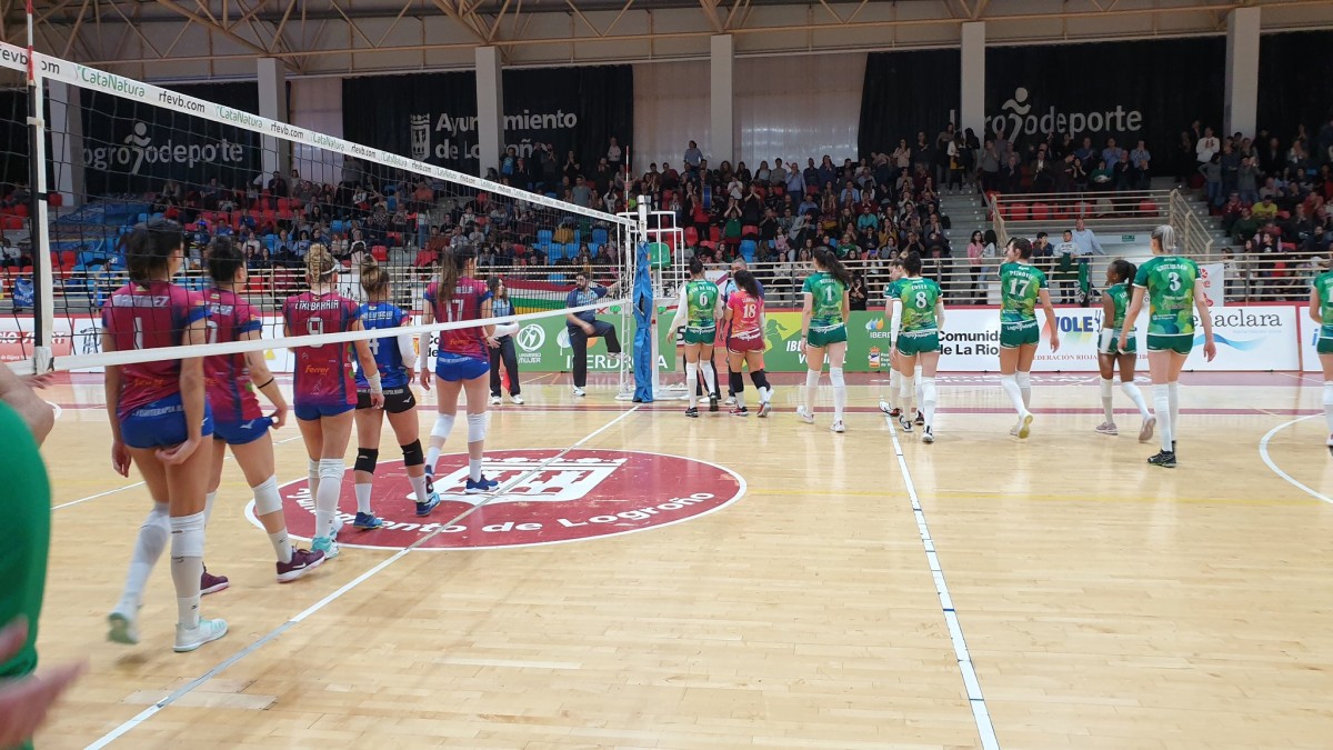 El conjunto de Alberto Avellaneda entró muy bien al partido y jugó de tú a tú al líder de la Liga Iberdrola en los primeros compases del choque. Tanto es así que, gracias a su buen trabajo en saque, fue capaz de ponerse en el luminoso con una ventaja de 1-4. Pero, poco a poco, el conjunto de Logroño comenzó a sentirse más cómodo en la cancha y con Eli Benito como principal arma logró ponerse por delante (12-11). A pesar de todo, hasta el final del primer set, máxima igualdad y el primer acto se resolvió por pequeños detalles (25-22).