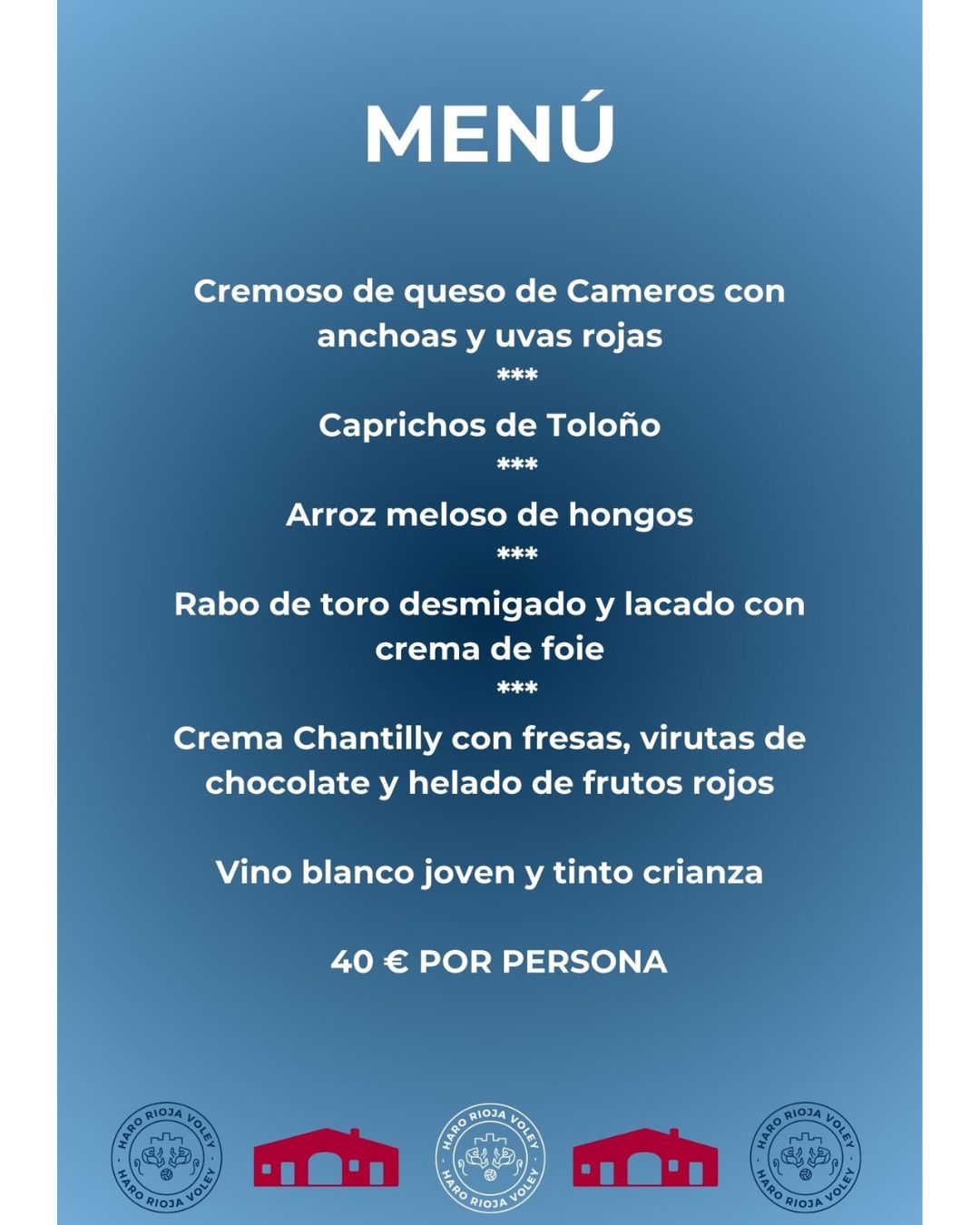 El menú de 40 euros incluirá delicias como cremoso de queso de Cameros con anchoas y uvas rojas, caprichos de Toloño, arroz meloso de hongos, rabo de toro desmigado y lacado con crema de foie, crema Chantilly con fresas, virutas de chocolate y helado de frutos rojos. Además, se servirá vino blanco joven y vino crianza de Rioja. Mientras tanto, el menú infantil ofrecerá croquetas de jamón ibérico, calamares, hamburguesa con patatas fritas y helado de chocolate.